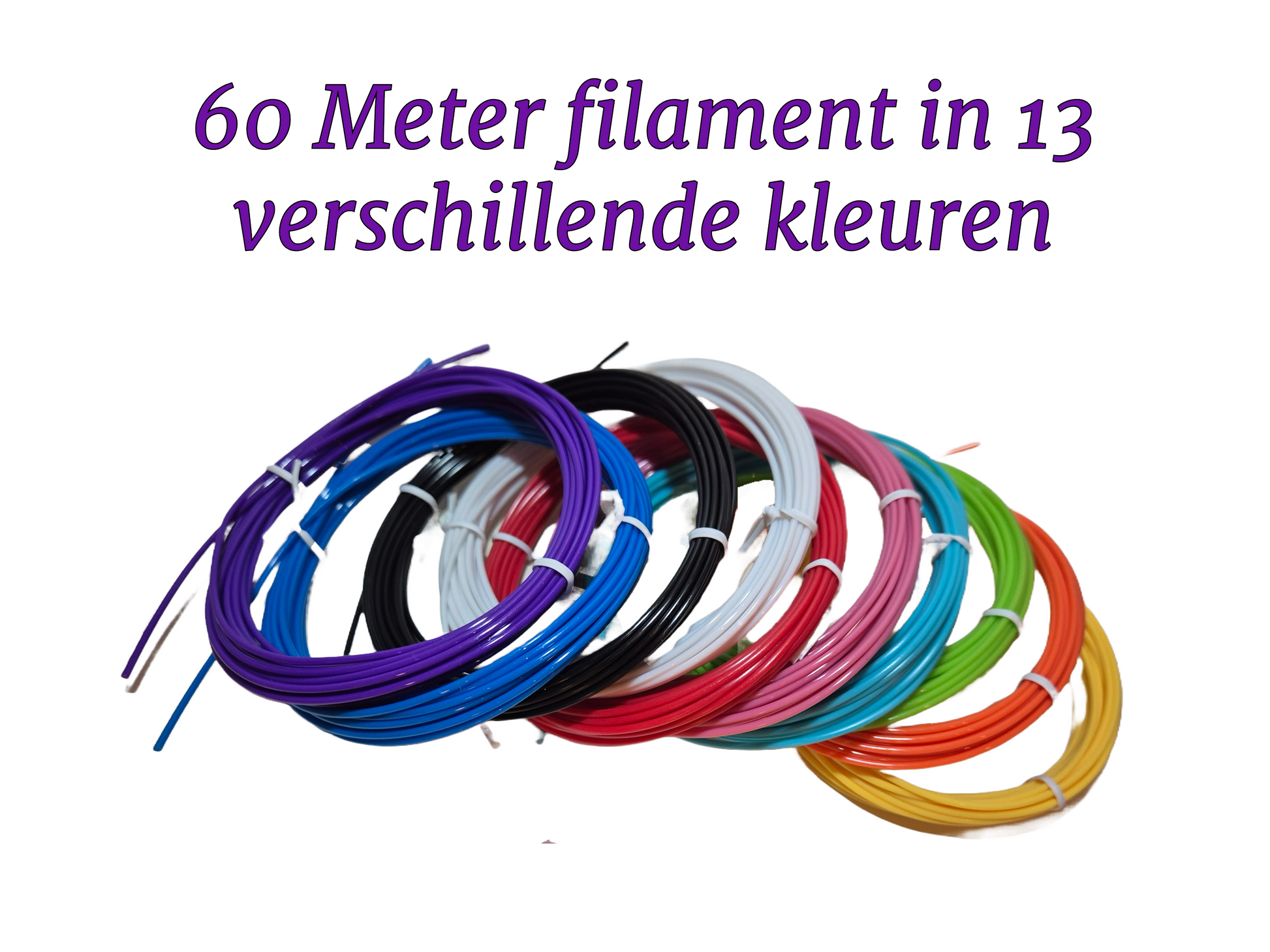 - 60 meter PLA-filament in verschillende kleuren