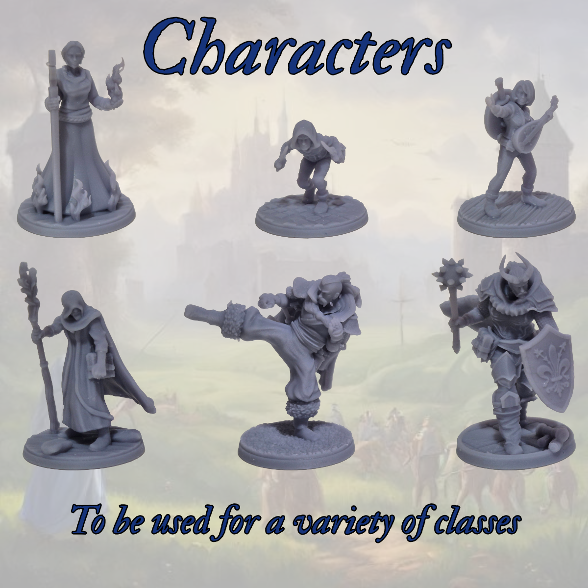 Wat is erbij inbegrepen: 27 unieke 3D-geprinte ongeverfde miniaturen in verschillende classes/ rollen: