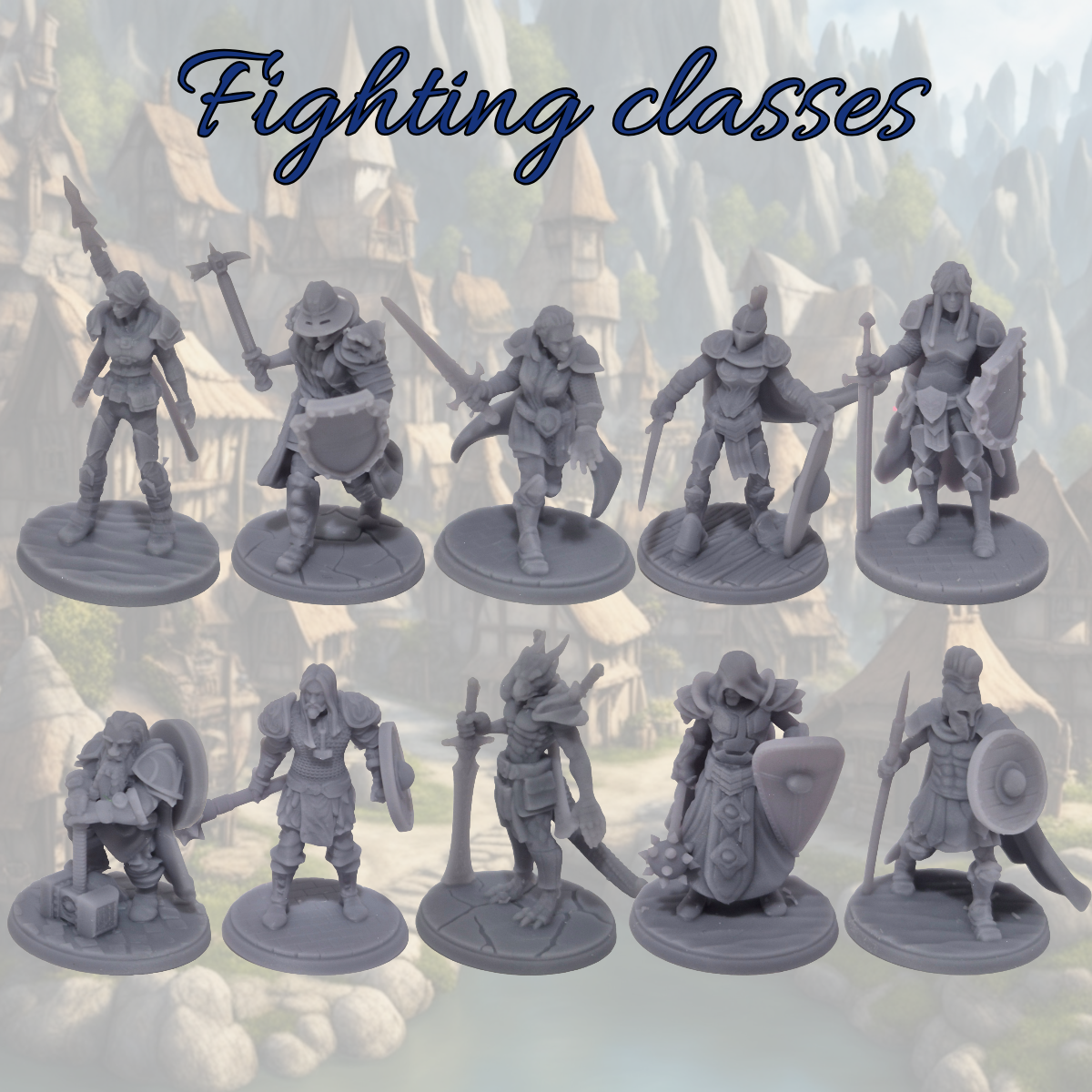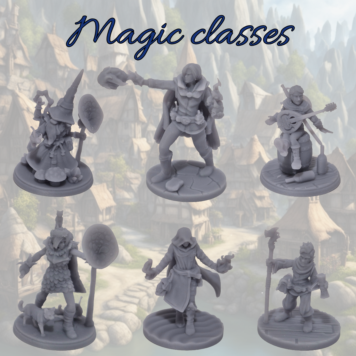 Wat is erbij inbegrepen: 21 unieke 3D-geprinte ongeverfde heldenminiaturen voor alle verschillende classes: Barbarian, Bard, Cleric, Druid, Fighter, Monk, Paladin, Ranger, Rogue, Sorcerer, Warlock en Wizard.
